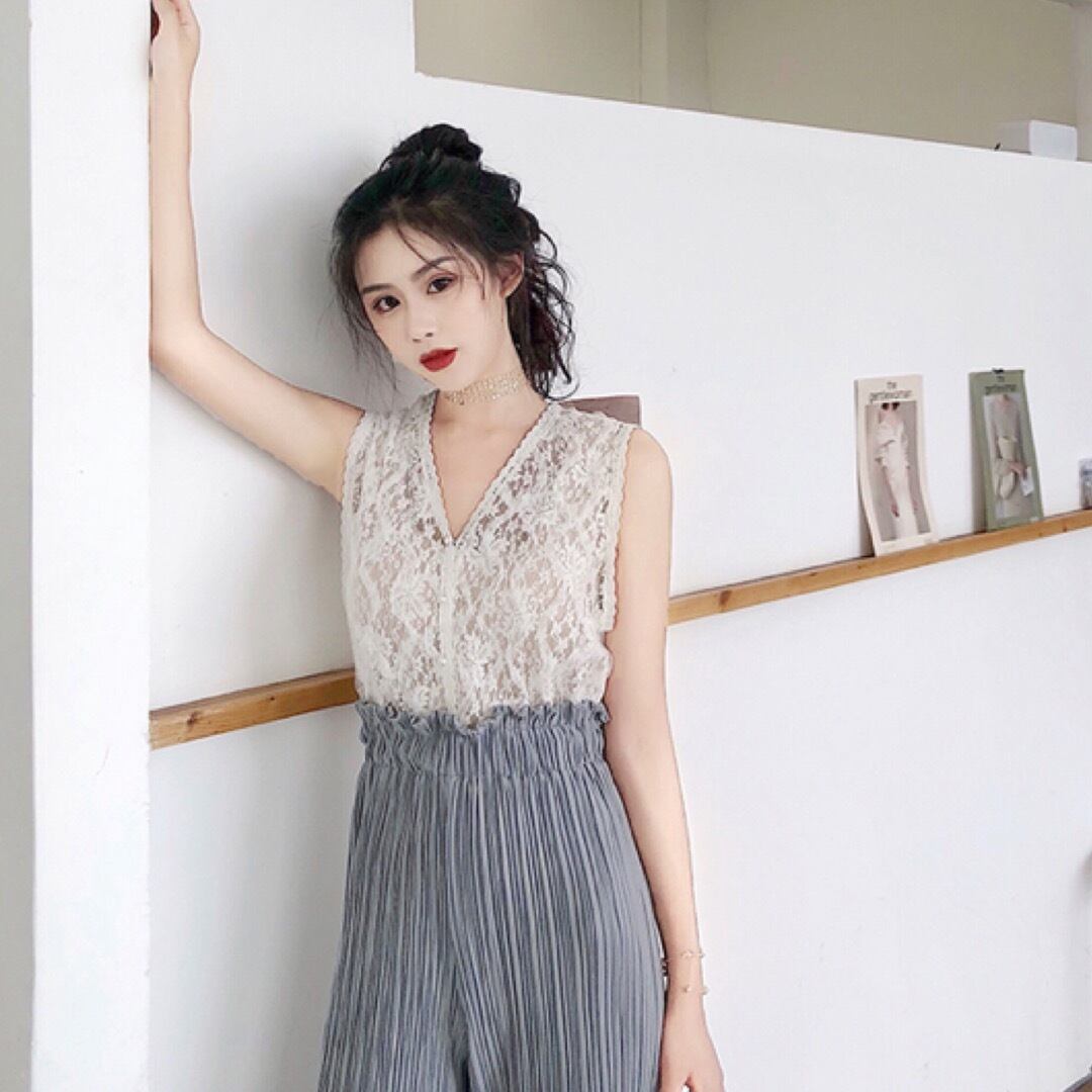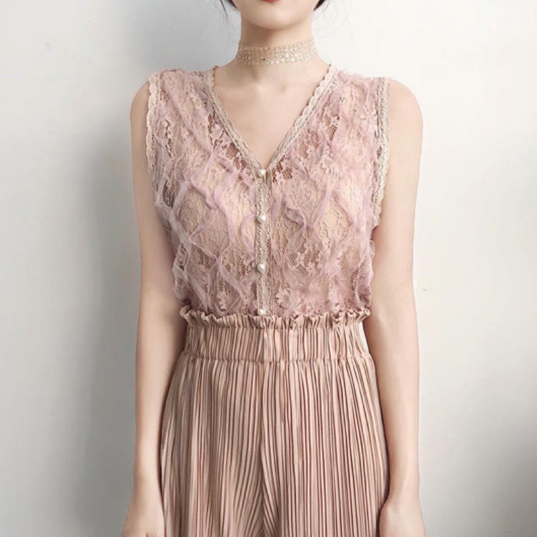 【送料無料】レース タンクトップ ブラック トップス ノースリーブ
