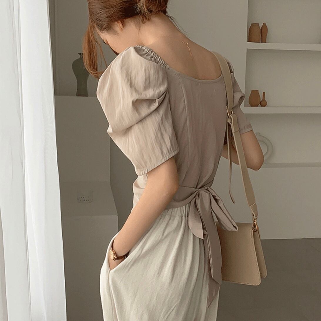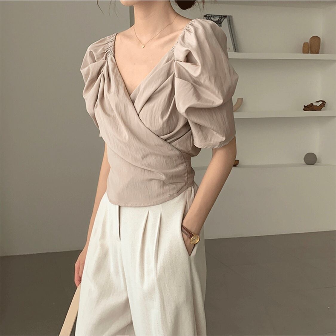 【送料無料】カシュクール バック リボン ブラウス トップス 2カラー