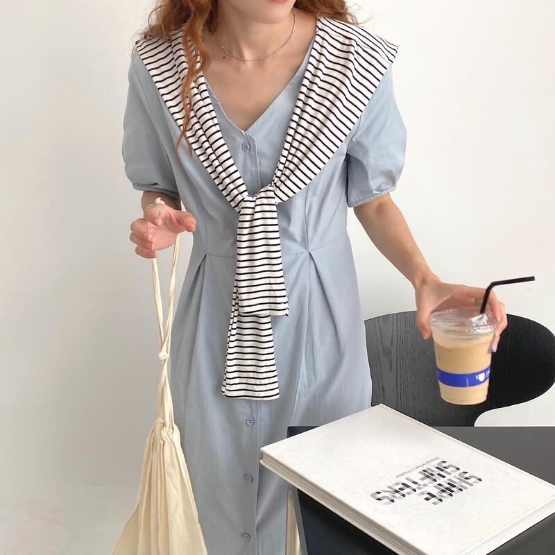 【送料無料】ウエスト タック ワンピース フレア