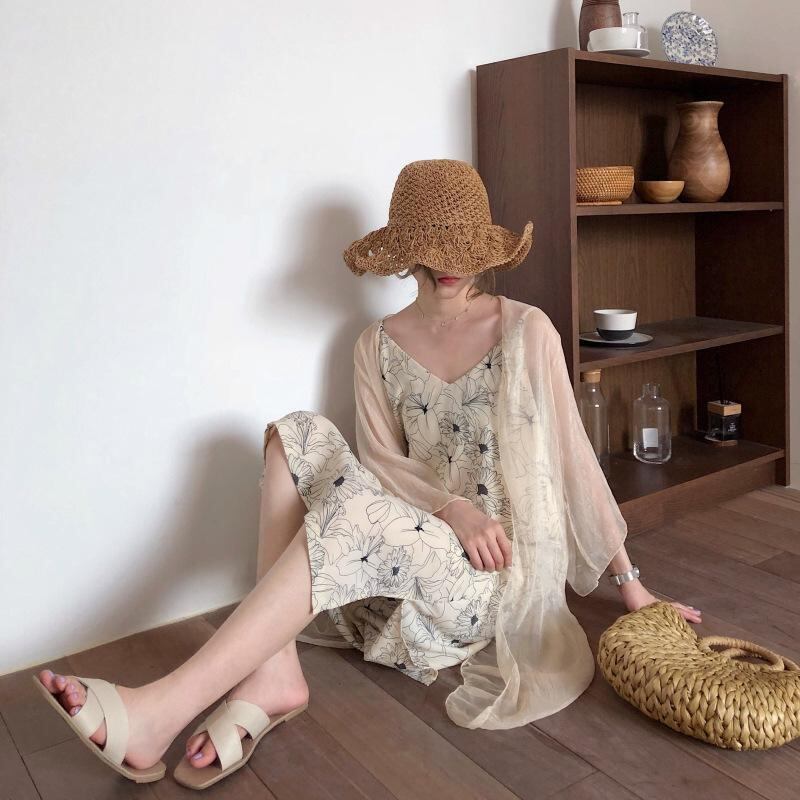 【送料無料】フラワー プリント キャミソール ワンピース ロング ノースリーブ